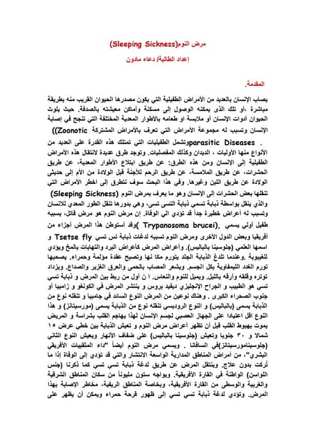 مرض النوم الأفريقي الذي تسببه ذبابة