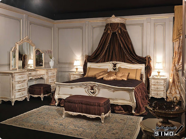 إن تصميم السرير في غرف النوم الكلاسيك يمتاز بشكل مميز جدا ومختلف كليا عن اشكال وتصاميم أسرة غرف النوم المودرن حيث تكثر فيه الحليات الزخرفية والإنحناءات المحفورة في الخشب في.