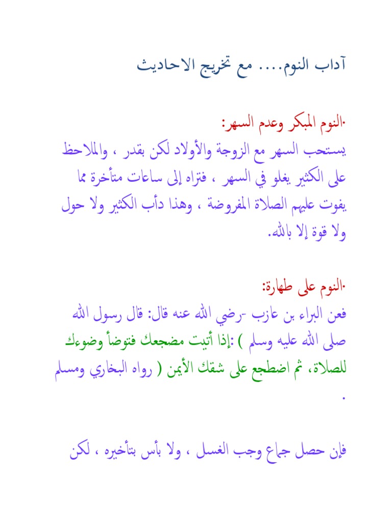آداب النوم مسائل وفوائد مدونة يونس