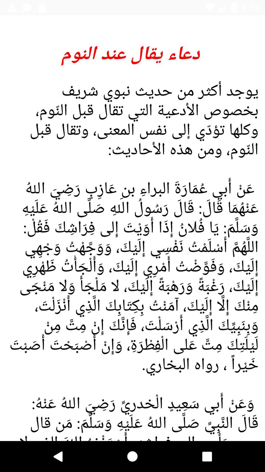 ادعية الرسول قبل النوم