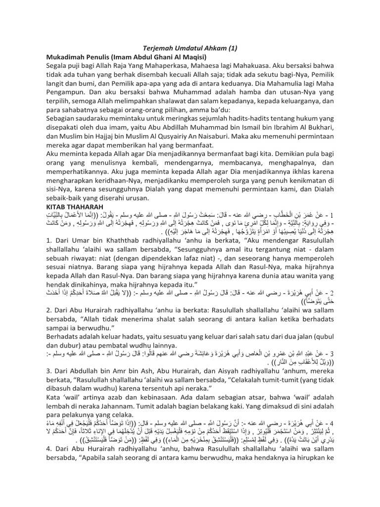 أقوال العلماء الأعلام على أحاديث عمدة
