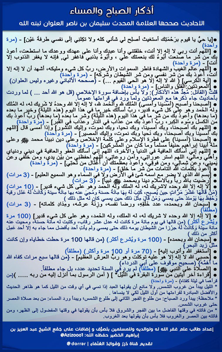 الأذكار بعد الصلاة بتصحيح الشيخ سليمان بن ناصر العلوان