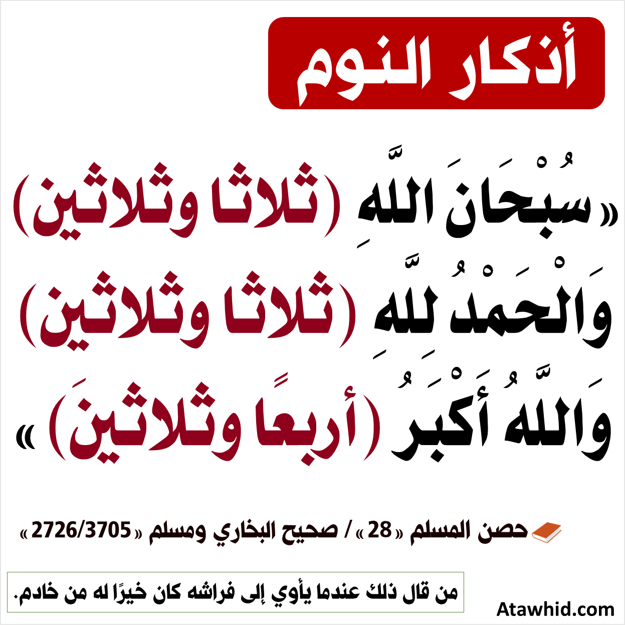 حصن المسلم اذكار النوم مفهرس