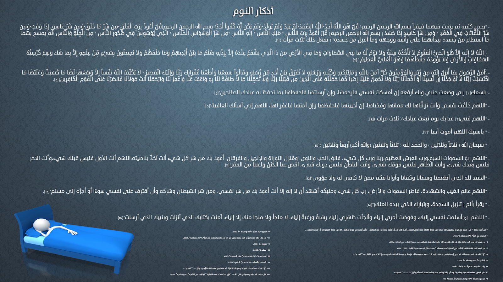 أذكار النوم والتحصين الصحيحة مكتوبة