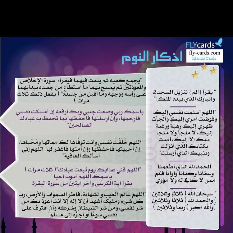 جميع أذكار النوم الصحيحة مكتوبة كاملة