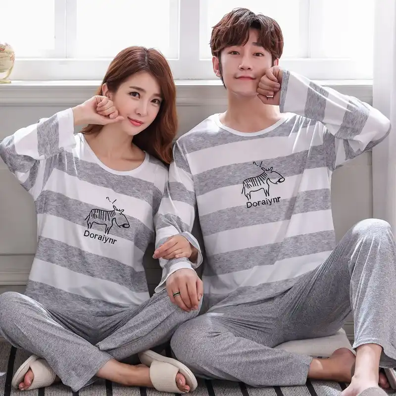 بيجامة شتوية للخريف للأزواج طقم ملابس نوم عشاق نظارات شمسية من أقمشة مخططة بأكمام طويلة بيجامات pjs بدلة بيجامات للرجال والنساء