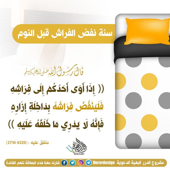إقتداء بالسنة نفض الفراش قبل النوم