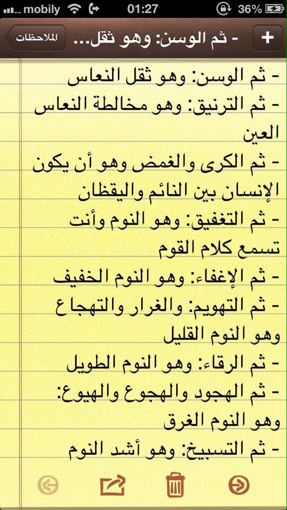 مراتب النوم النعاس الوسن الترنيق