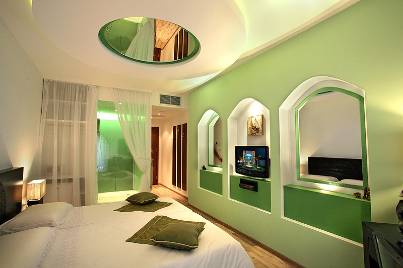 اللون الفستقي في غرف النوم. موقع محيط يقدم لكل عروسين. اللون الفستقي يعتبر هذا اللون من الألوان الجميلة التي انتشرت بشكل كبير لاسيما في غرف الأطفال كما أنه اشتق من اللون الأخضر الذي يعد من الألوان الثانوية المعروفة وهذا اللون من الألوان. يشعرك اللون الأخضر بالسلام والاسترخاء وهذا ما تحتاجين إليه تماما في ديكورات غرف النوم. 6 النمط الاستوائي لا يخلو من اللون الأخضر.