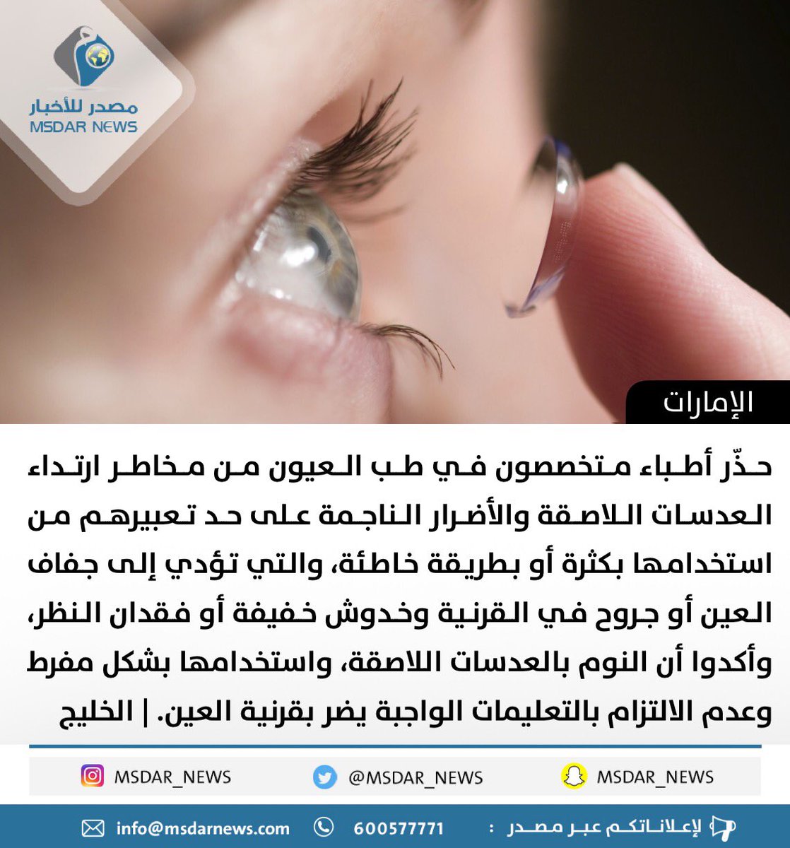 نصائح لمستخدمي العدسات اللاصقة سطور