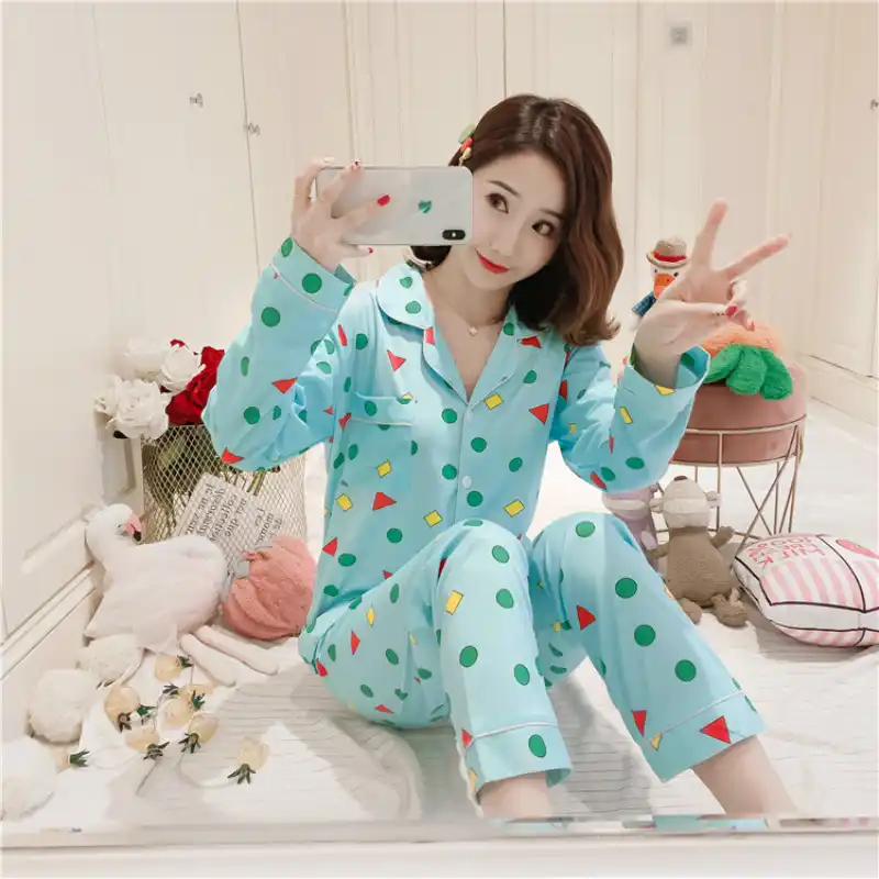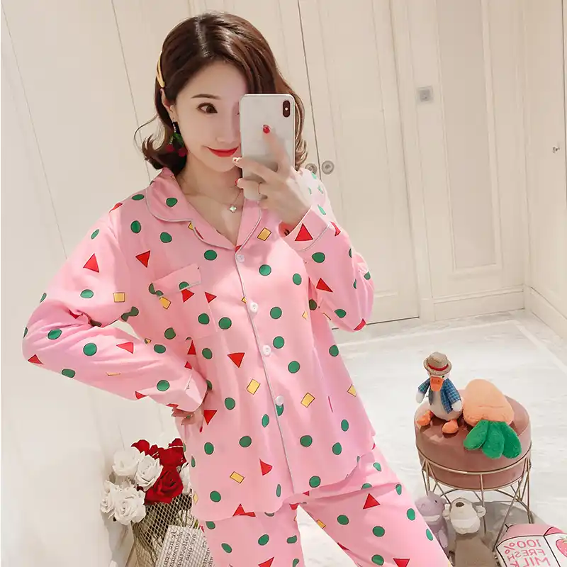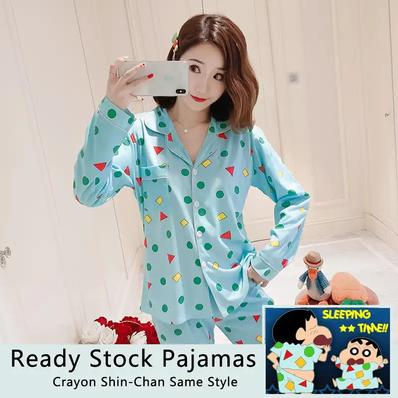 بيجامة نسائية كم طويل ثوب النوم تلوين شين تشان نفس النمط لطيف ملابس النوم غير رسمية الإناث