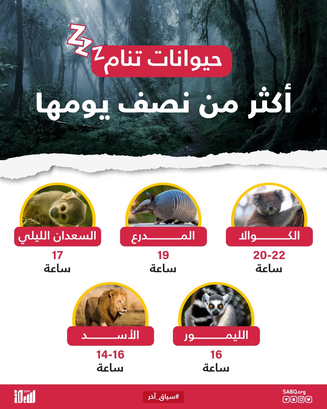 ساعات النوم القصوى لدى مختلف الحيوانات