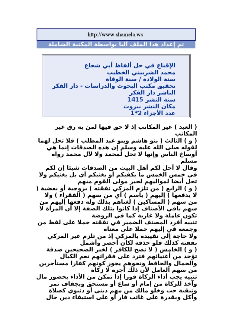 الإقناع في حل ألفاظ أبي شجاع الخطيب