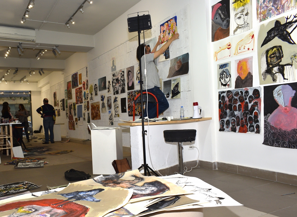 استفزاز مشاكسة وسخرية طفولية لئيمة a a المفارقة الأولى ال تي تواجهنا في المعرض المشغل الجماعي للفنانين سمعان خو ام غيلان الصفدي وفادي الش معة تكم ن في.
