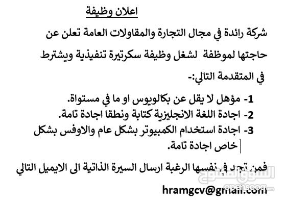 مطلوب سكرتيرة تنفيذية للعمل في صنعاء
