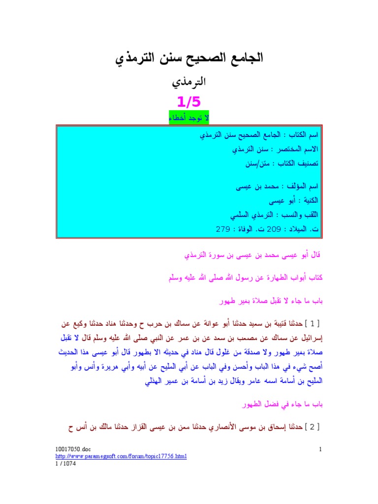 الجامع الصحيح سنن الترمذي من واحد الى خمسة
