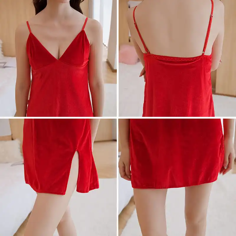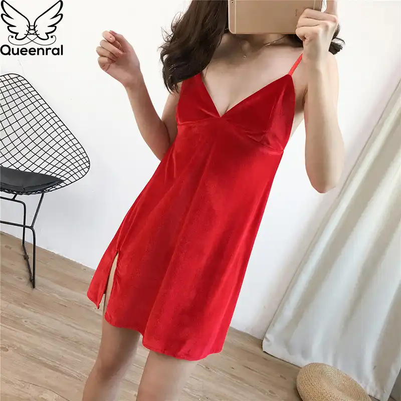 queenral ملابس النوم قمصان النوم للنساء قميص النوم مع وسادة الصدر الذهب المخملية فستان سهرة مثير الدانتيل سيدة ملابس نوم الملابس الداخلية