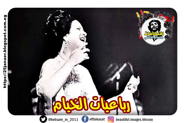 رباعيات الخيام هي أغنية من اداء أم كلثوم ومن كلمات عمر الخيام وترجمة أحمد رامي أنتجت عام 1950 ولحن رياض السنباطي الأغنية كانت على مقام الراست الموسيقي. من البوم سوناتا الحب 2013. عمر الخيام. Stream فما أطال النوم عمر ا سلطنة غير عادية من أم كلثوم رباعيات الخيام by mahmoud tarek abdelwahab from desktop or your mobile device.