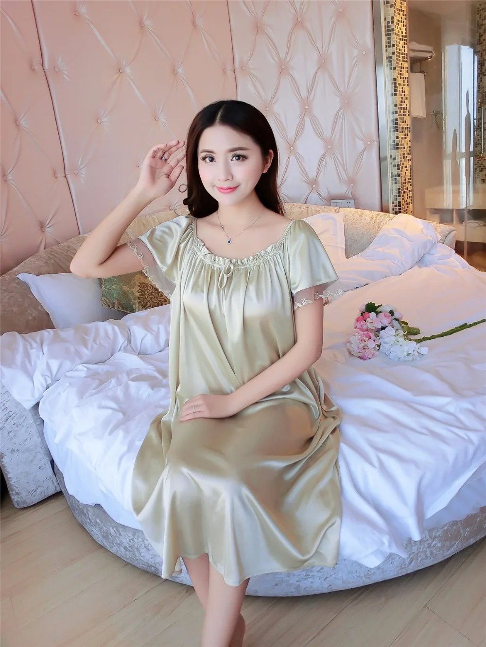 مثير النساء الحرير ملابس خاصة من صنع الإنسان الحرير باس النوم زلة قميص ثوب النوم الصيف المنزل النوم ارتداء الملابس