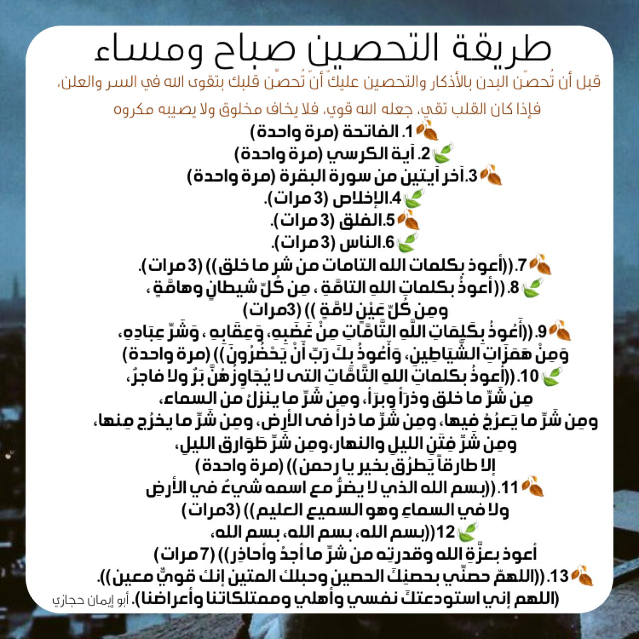 طريقة تحصين الأطفال مكتوبة. الأدعية الواردة عن النبي صلى الله عليه وسلم وقراءة آية الكرسي قبل النوم فهي تحفظ من الشيطان وإذا كان الطفل في عمر يسمح له بالفهم والحفظ فتعويده على الأذكار الصباحية. ينبغي على كل مسلم أن يداوم على قراءة أذكار النوم ودعاء التحصين قبل النوم ومن أدعية تحصين النفس قبل النوم ما يلي.