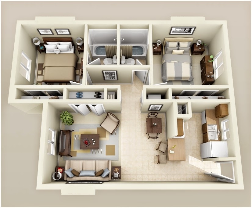 تصميم شقه ثلاث غرف نوم