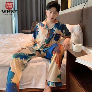 الحرير الرجال بيجامة مجموعات الحرير بيجامة رجل ملابس خاصة منامة ثوب النوم الصيف قصيرة الأكمام طباعة الرجال بيجامة