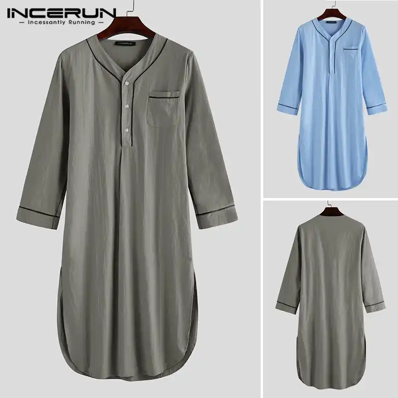 رداء نوم مخطط عتيق من incerun بأزرار وياقة واقفة قميص نوم رجالي فضفاض من القطن أردية حمام رجالية موضة بأكمام طويلة مقاس 7