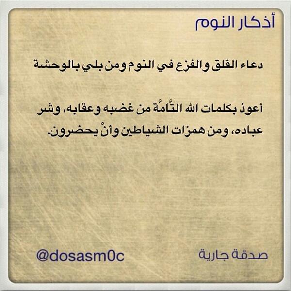 دعاء القلق والفزع في النوم. دعاء القلق والفزع في النوم السلام عليكم ورحمه الله وبركاته دعاء القلق والفزع في النوم أعوذ بكلمات التامات من غضبه وعقابه وشر عباده ومن همزات الشياطين وأن يحضرون ما. دعاء القلق والفزع في النوم ادعية القلق ادعية الفزع دعاء القلق والفزع في النوم أعوذ بكلمات التامات من غضبه وعقابه وشر عباده ومن همزات الشياطين وأ. الفزع في النوم من الامور التي مر بها كل الناس فلا يوجد شخص لم يصبه فزع أثناء نومه أو قام من نومه سريعا في حالة من الخوف و القلق و لكن اتباع سنة رسول الله صلى الله عليه و سلم قبل النوم من الأمور. من الأدعية العامة التي يمكن أن يدعوها الشخص.