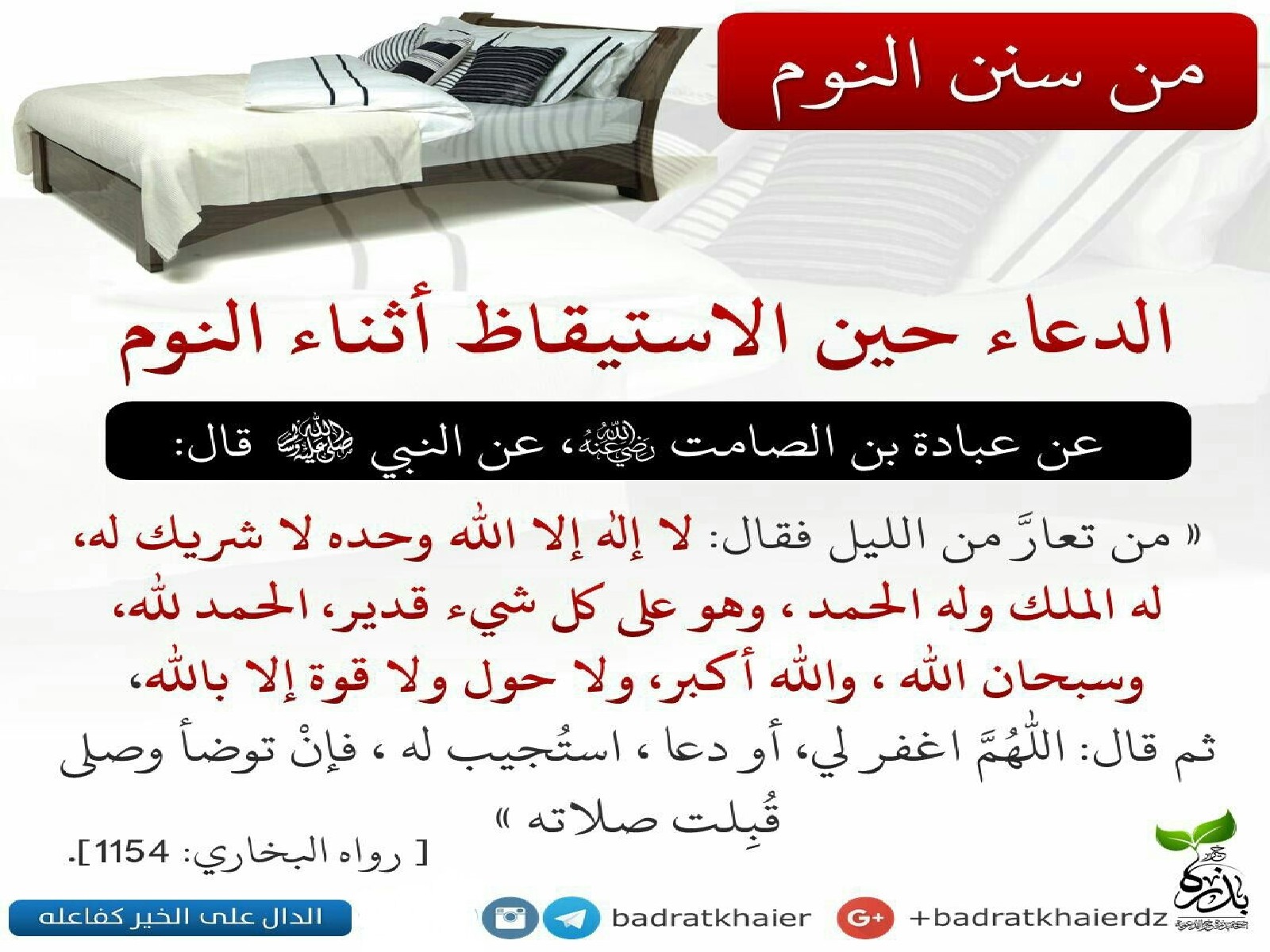 دعاء عند التعار من النوم. لا إله إلا الله وحده لا شريك له له الملك وله الحمد وهو على كل. من الأذكار الم حبب قولها قبل النوم إذا أوى أحد كم إلى فراش ه فليأخذ داخ لة إزار ه فلينف ض بها فراش ه وليسم الله. دعاء التعار هو دعاء ي ذكر عند التعار وهو استيقاظ الإنسان ليل ا فإن المسلم باتباعه أثر النبي صلى الله عليه وسلم في ذلك فسيجني. فإنه لا يعلم ما خل فه بعده على فراش ه.