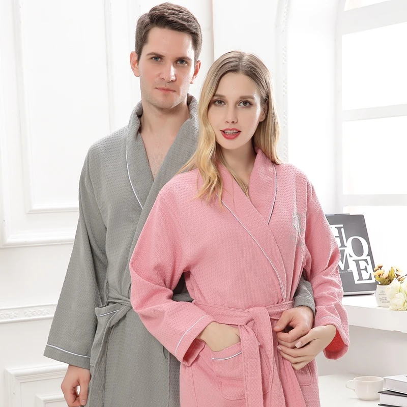 القطن روب استحمام روب للنوم الرجال النساء طويلة الأكمام الهراء النوم صالة bathrobe peignoir قمصان النوم عشاق robes الصيف