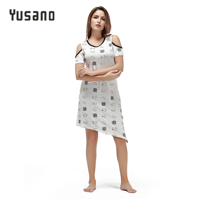 بجامات نسائية كورية 2019 فستان سهرة صيفي جديد قميص نوم قطن مطبوع بأكمام قصيرة ملابس نوم جذابة ملابس منزلية بسيطة