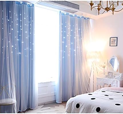 ستائر ستار ستارز ستائر التعتيم للأطفال بنات غرفة المعيشة غرفة نوم ملونة مزدوجة طبقة ستار ستائر النافذة 1 لوحة 53 w 63 l رمادي