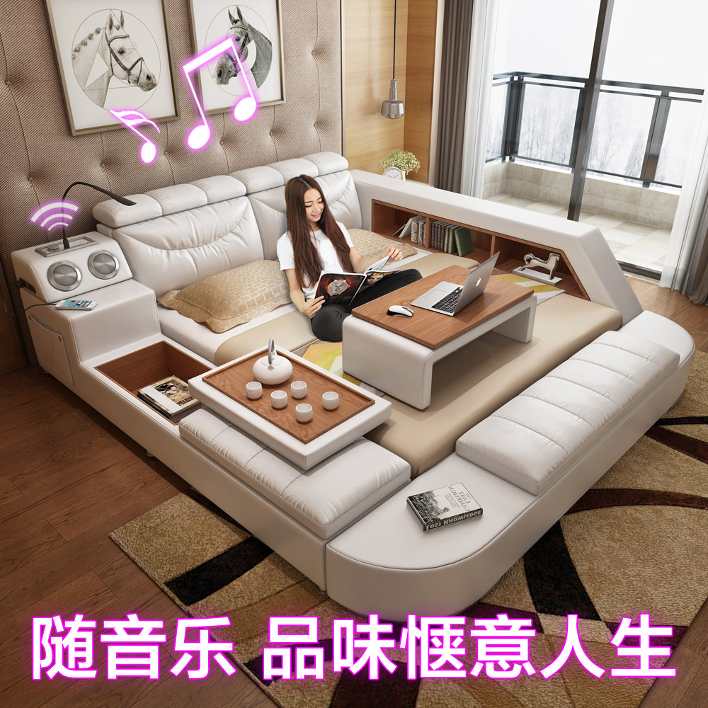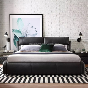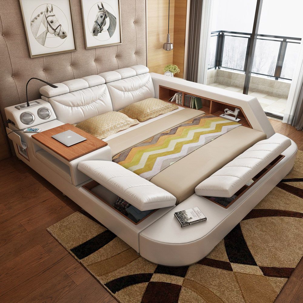الحديث الجلود النسيج السرير مع صندوق تخزين وظيفة مجموعة أثاث غرف النوم chestrfield نمط مكبر صوت متعدد الوسائط شاحن يو اس بي