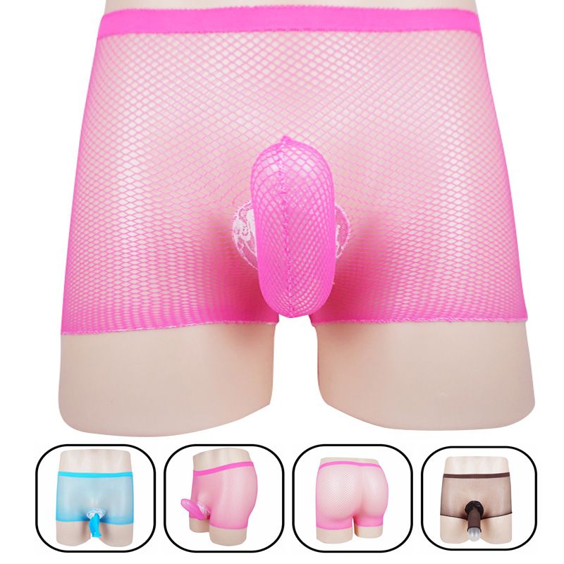 مثير أزياء رجالي الملابس الداخلية انظر من خلال شبكة فضفاضة صالة الملاكم السراويل ملابس نوم ملابس داخلية vova
