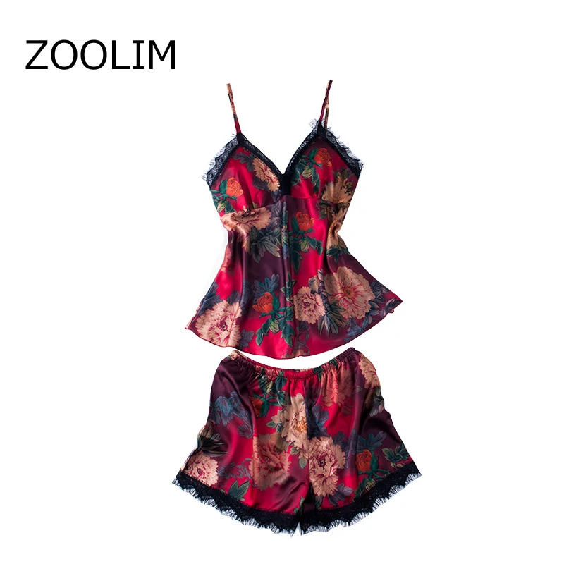 طقم بيجامة نسائي للنوم من zoolim طقم بيجامة مثير من الساتان ملابس نوم بيجاما مع شورت بيجامة نسائي بزهور مع وسادات صدر