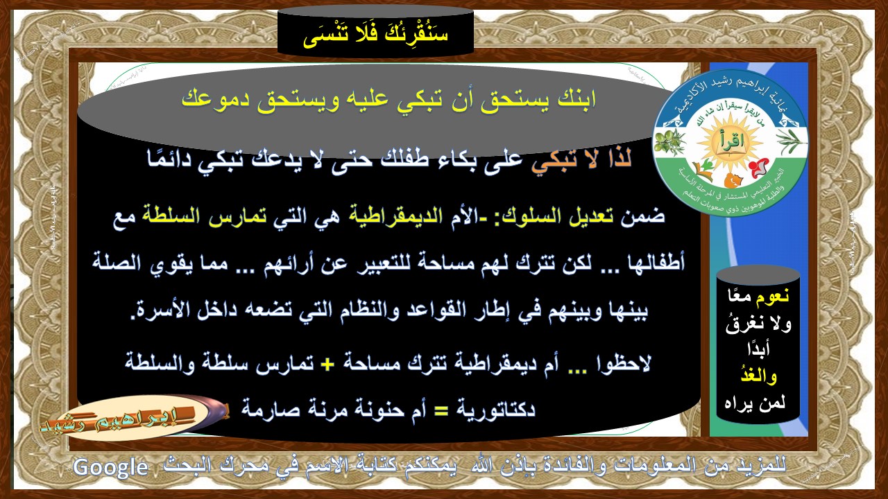 ت عد مشاكل وصعوبات الن وم من أكثر المشاكل التي يواجهها الوالدين مع أطفالهم ومن المهم هنا معرفة الدورة الطبيعي ة للنوم والتي تنقسم إلى مرحلة حركة العين السريعة بالإنجليزية. علمي طفلك النوم بغرفته خطوة بخطوة. تشير دراسة إلى أن ضرب الاطفال ما هو إلا وسيلة لتفريغ الغضب عند الأباء لكن ليس لها دور إيجابي في تربية الطفل.