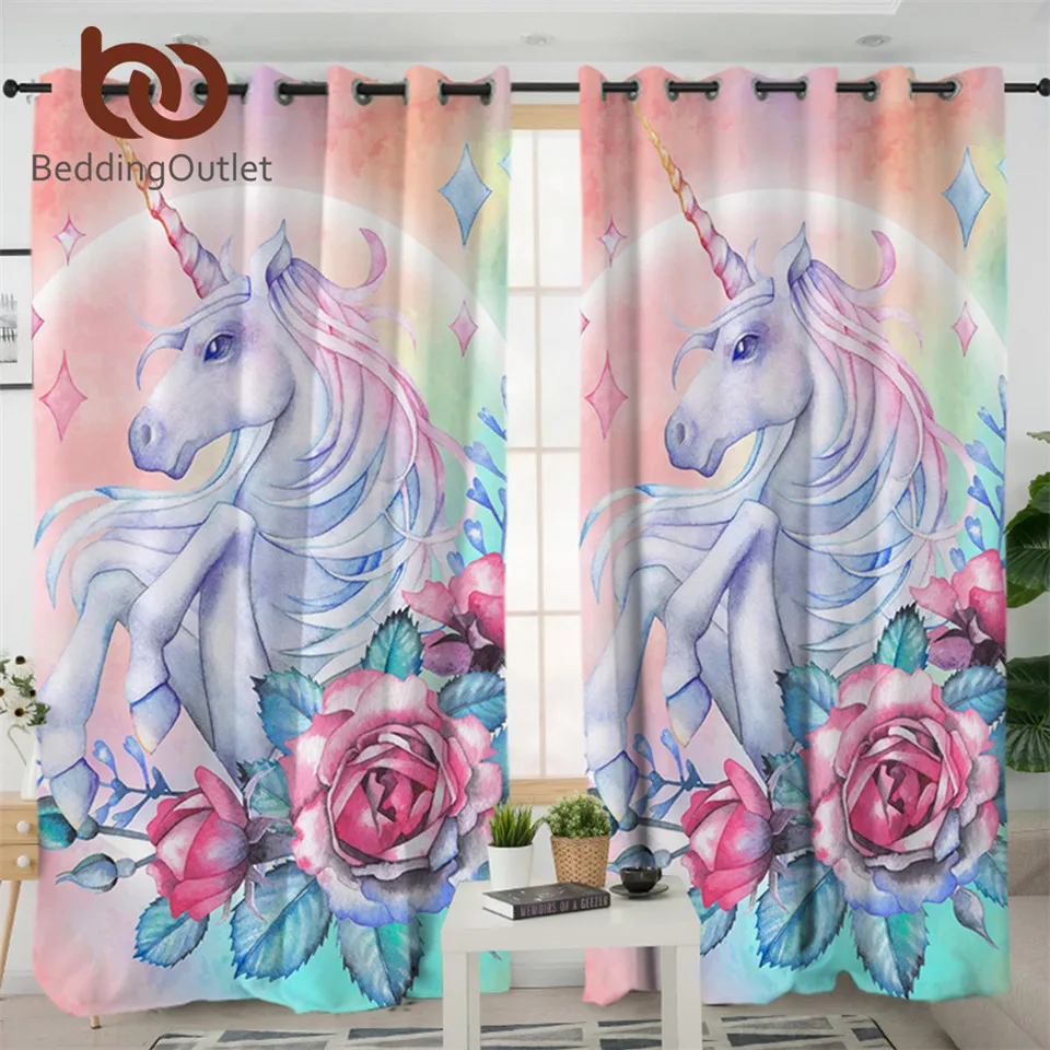 beddingoutlet يونيكورن و ارتفع الستار لغرفة المعيشة الاطفال الكرتون غرفة نوم الستار جرلي الأزهار نافذة العلاج الستائر 1 قطعة في الستائر من المنزل