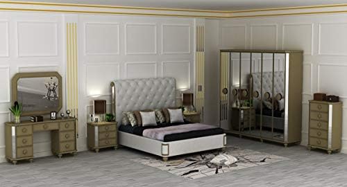 غرف نوم بيج غامق. بني غامق and بيج. بوسيتانو w طقم غرفة نوم سرير ملكي. بني غامق and زجاج مرايا بيج. غرف نوم 15 العناصر.