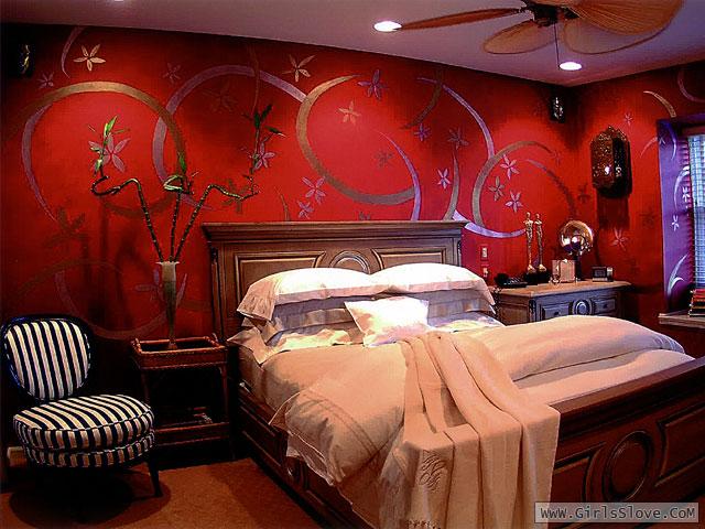 غرف نوم رومانسيه حمراء ديكورات مودرن.