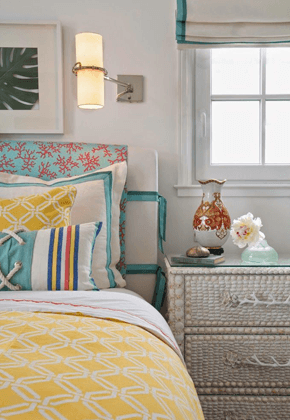 اللون الأصفر لون بارز و دائما ما يأخذ العينين إلى الشئ الذى يعبر عنه و هو لون مناسب لغرف النوم لجميع الأعمار فهو يناسب غرف المتزوجون حديثا و يناسب غرف الشباب و كذلك يناسب غرف الأطفال و يمكن أن يتداخل اللون الأصفر مع.