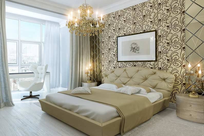 غرفة كلاسيك فخمة ستارة فوق السرير classic bedroom interior.