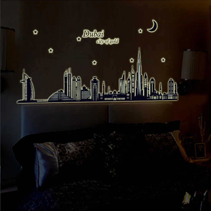 دبي المشهد مضيئة الفلورسنت ملصقات جدار غرف نوم الفينيل ملصقات جدار كبير ديكور المنزل ملصقات فنية جدار