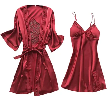 تصميم فاخر loungewear المرأة ملابس نوم جنسي الملابس الداخلية ميدي الأحمر العروس الحرير النوم اللباس nighties لحضور حفل زفاف الليلة buy ملابس نوم
