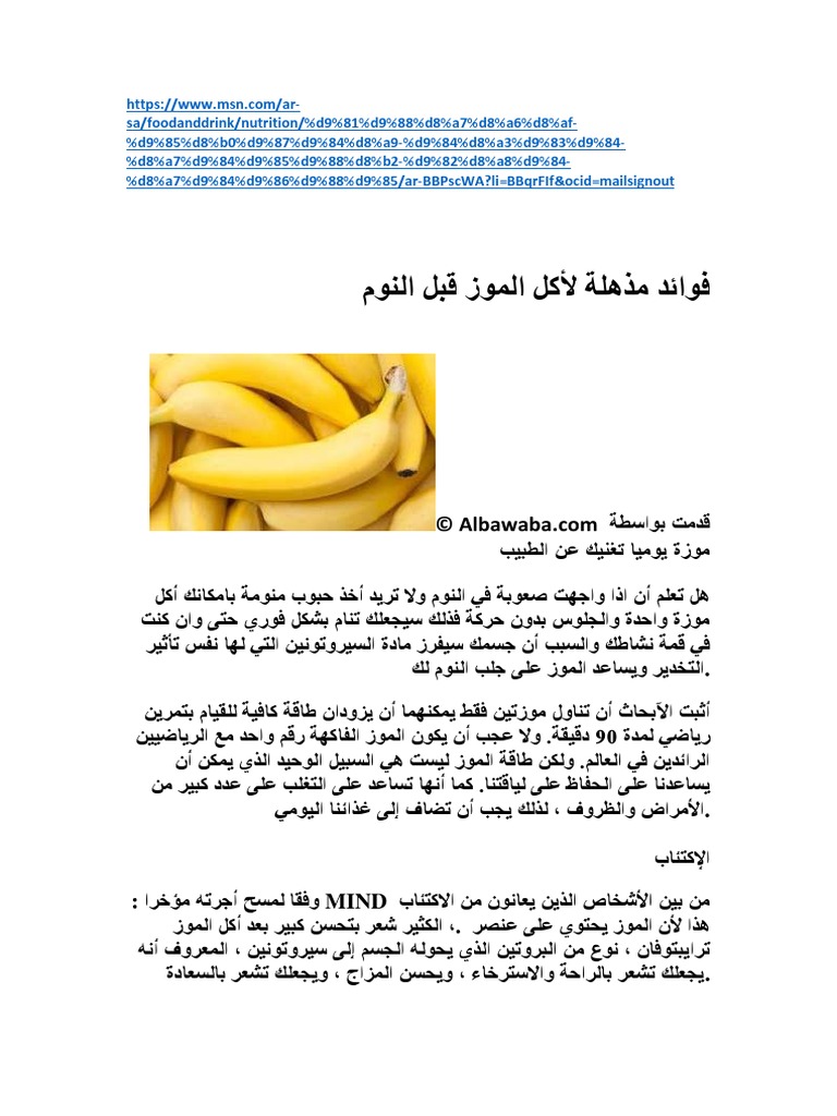 هل تعلم أن اذا واجهت صعوبة في النوم ولا تريد أخذ حبوب منومة بامكانك أكل موزة واحدة والجلوس بدون حركة فذلك. ومن فوائد اكل الموز قبل النوم للعروس 2019 أنه قادر على جعل الجسم مسترخيا والنوم بسرعة. الهضمي وتنظيم وظائفه وذلك لاحتوائه على الألياف والماء إذ تحتوي موزة واحدة متوسطة الحجم على ما ي قارب 10 من الكمي ة الم وصى بتناولها.