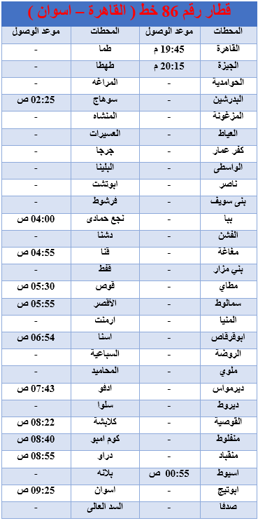 مواعيد قطارات النوم من القاهرة الى اسوان