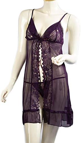 طقم قميص نوم مثير بنفسجي تول نسائي