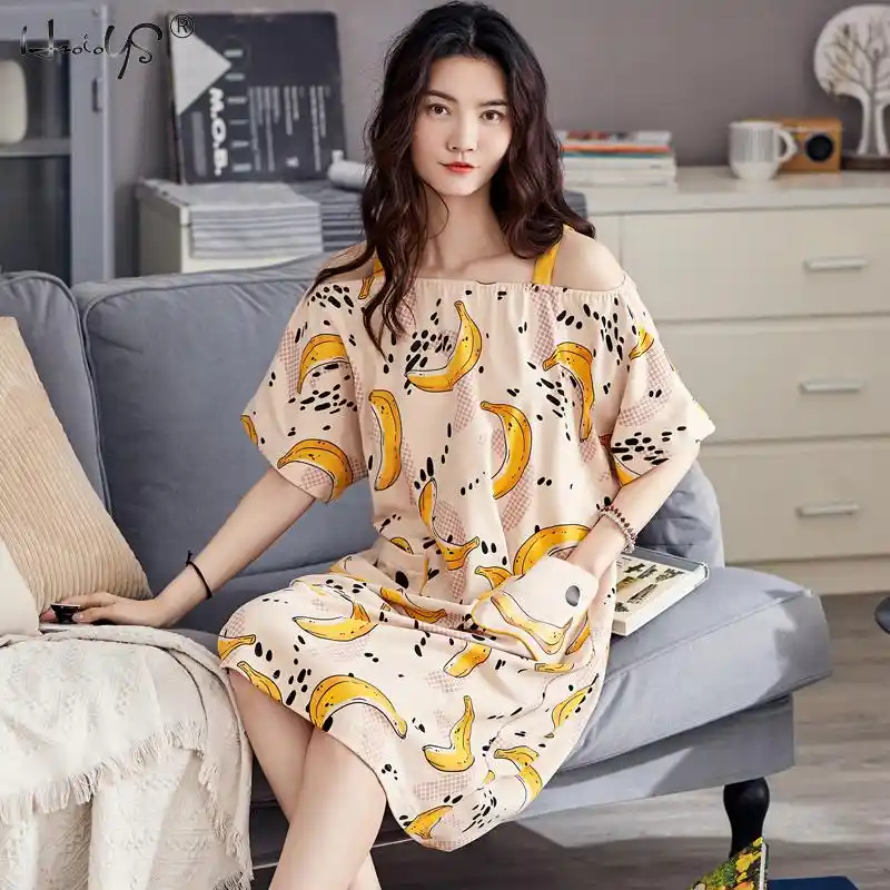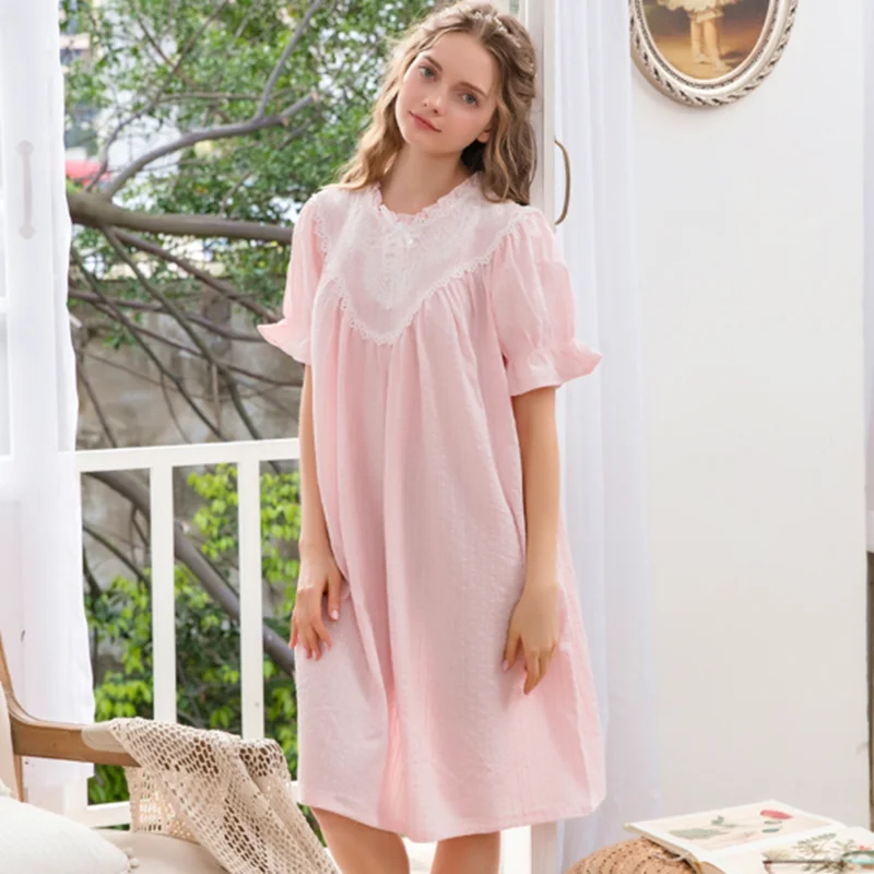 قميص نوم نسائي قطني كامل بأكمام قصيرة قميص نوم صيفي جذاب ذو قصة قديمة فستان نسائي فضفاض حلو ملابس منزلية قمصان نوم وملابس نوم aliexpress