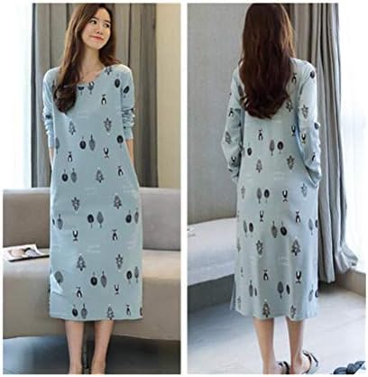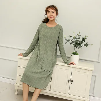 بيجامات قطن بتصميم هندسي لون نقي مقاس كبير ملابس نوم نسائية قميص نوم بأكمام طويلة ورقبة مستديرة قمصان نوم