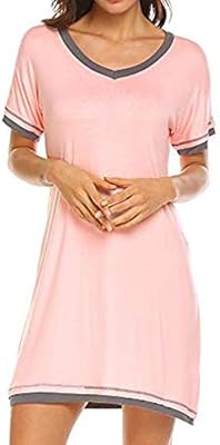 قميص نوم نسائي من القطن بأكمام قصيرة بتصميم مريح ناعم