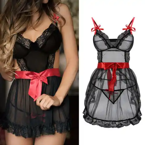 قميص نوم دانتيل مقاس كبير ملابس نوم نسائية مثيرة بلا أكمام ملابس نوم ملابس داخلية جديدة لعام 2019 تخفيضات كبيرة 1